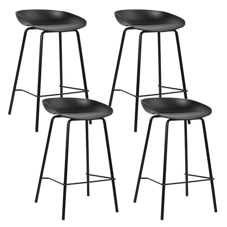 4x Bar Stools Leather Gas Lift w/Armrest Black