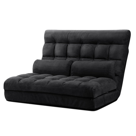 Artiss Lounge Sofa Bed 2-seater Charcoal Suede