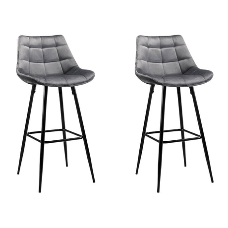 2x Bar Stools Velvet Swivel Metal Legs Green