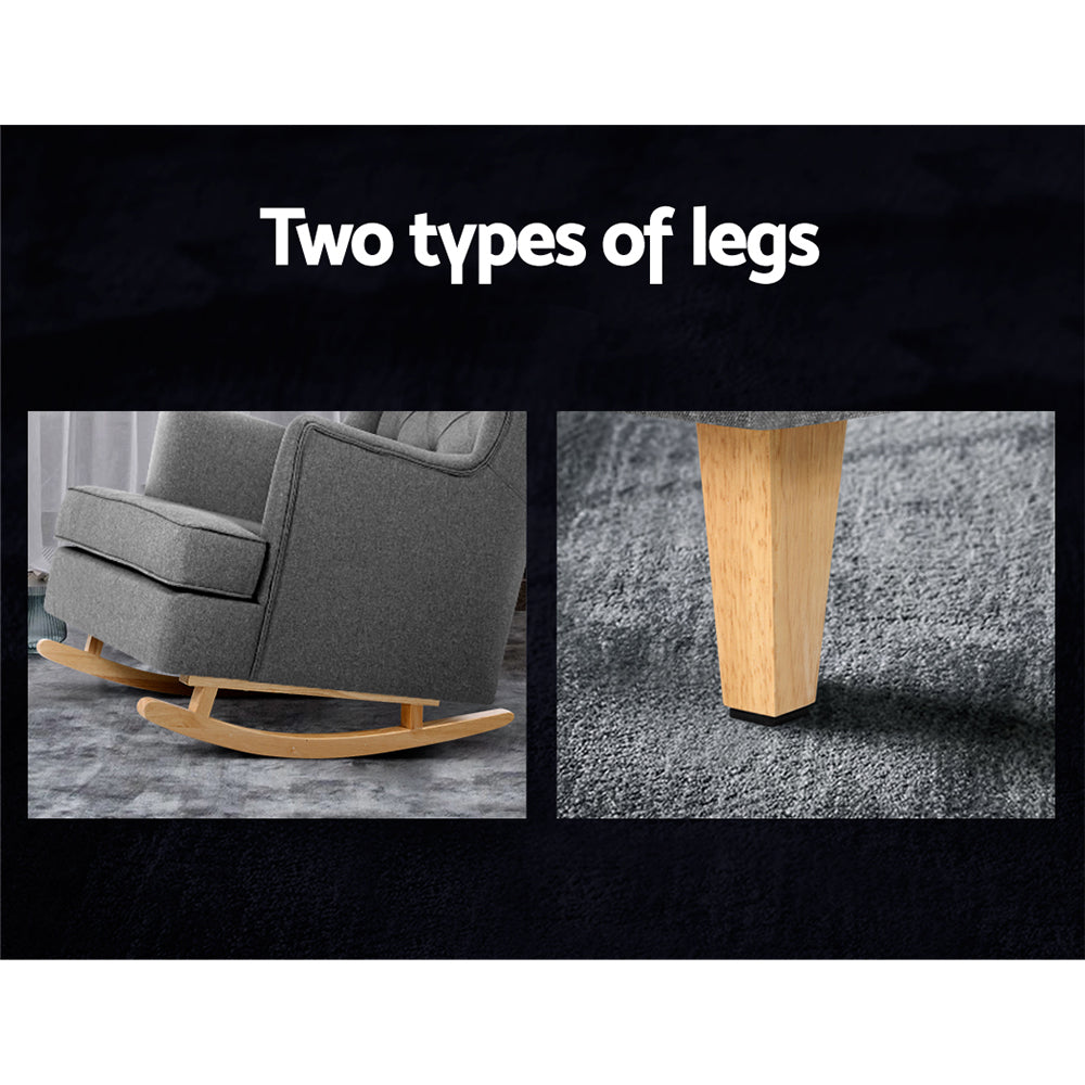Artiss Rocking Chair Armchair Linen Fabric Grey Gaia