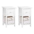 Artiss Bedside Table 1 Drawer with Basket Rustic White X2