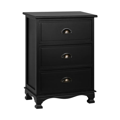 Artiss Bedside Table 3 Drawers Vintage - THYME Black