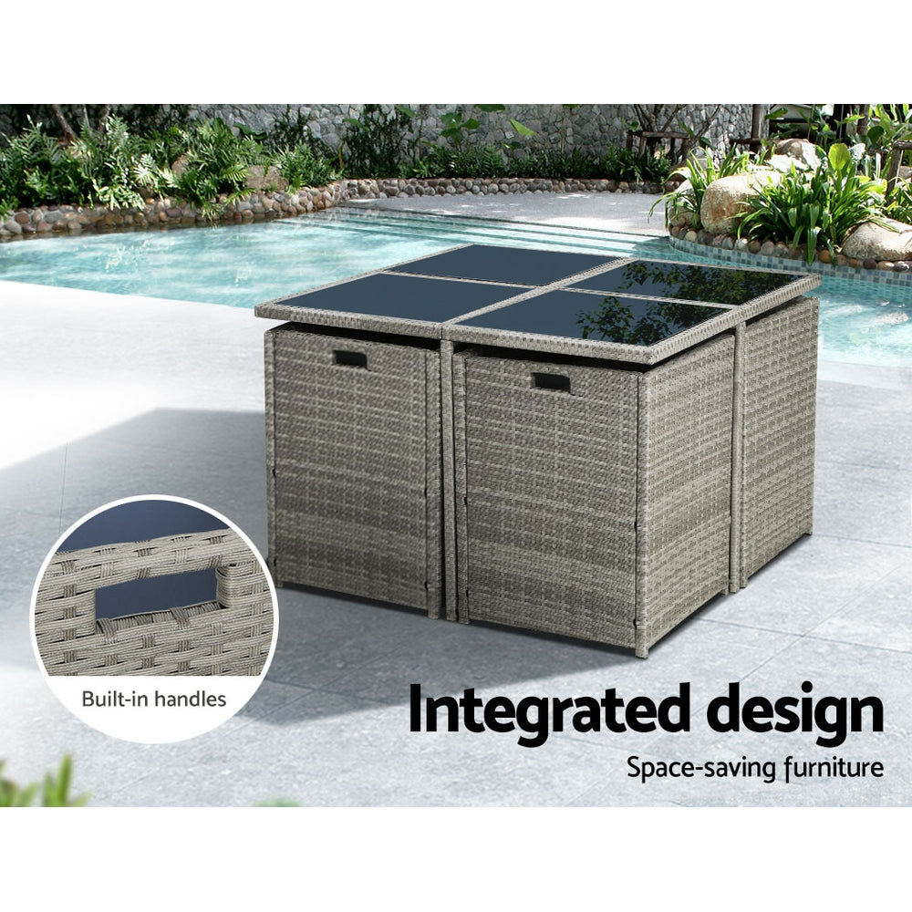 Gardeon Outdoor Dining Set 9 Piece Wicker Table Chairs Setting Grey