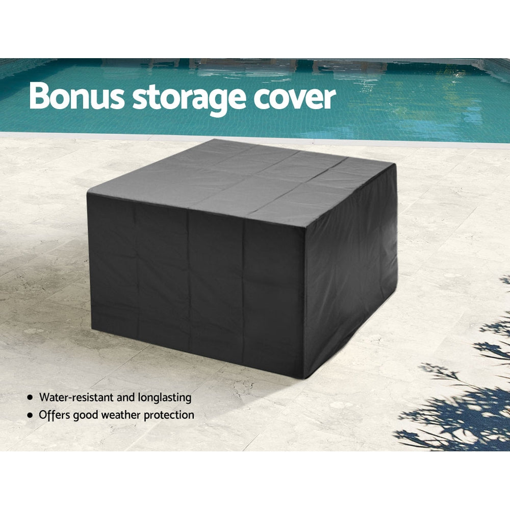Looking to create a chic and gorgeous outdoor dining setting? The Gardeon 8-seater wicker outdoor dining set is a must purchase. It will liven up your outdoor space and help you achieve an elegant space where you can enjoy day and night and summer and winter. This 9-piece set comprises of four chairs, four ottomans, and a large table. It boasts an integrated design that helps save space. The ottomans can be pushed under the chairs when not needed. All the seat and back cushions come with thick, high-density soft padding that ensures your comfort always. Additionally, the removable cushion covers are water-resistant to suit different seasons. Furthermore, our outdoor set features a lovely wicker weave for a touch of tropical charm, and the UV-resistant PE wicker with weather-resistant steel frame is suitable for all-season use. The large table with thick tempered glass top, durable frame, and stable cross construction ensures strength, durability, and stability. This set also comes with a bonus water-resistant storage cover that offer protection from all seasons. Our wicker outdoor dining set will withstand the test of time. You can create a praise-worthy spot with just a little creativity that will wow your guests. Shop it for your home today.