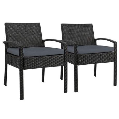 Gardeon 2PC Outdoor Dining Chairs Patio Furniture Rattan Lounge Chair Cushion Felix