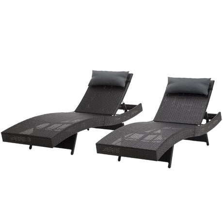 Gardeon 2PC Sun Lounge Wicker Lounger Outdoor Furniture Beach Chair Garden Adjustable Black