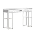 Spruce up your home office with this bright and spacious Computer Desk from Artiss. The premium particleboard desktop is a generous 120cm long and 40cm wide and features four open shelves and three drawers for all your workspace needs and decoration. The tabletop has a 60kg weight capacity on top, 2.5kg per drawer and 10kg per shelf to carry all your essential equipment, whether you are using a laptop or a full desktop computer. It is sturdy and durable thanks to its iron frame. It has an easy-to-clean surface, smooth edges for safety, and anti-slip, anti-scratch feet to protect you and your floors. Whether you're studying or working from home, the Artiss Computer Desk is a perfectly stylish yet functional addition to your decor.