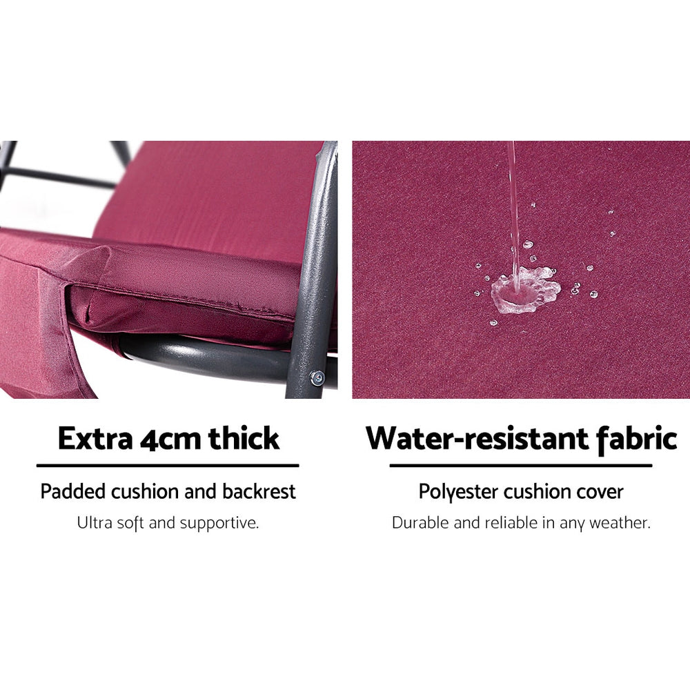 Gardeon Outdoor Swing Chair Garden Bench Furniture Canopy 3 Seater Wine Red