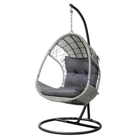 Gardeon Outdoor Egg Swing Chair Wicker Furniture Pod Stand Armrest Light Grey