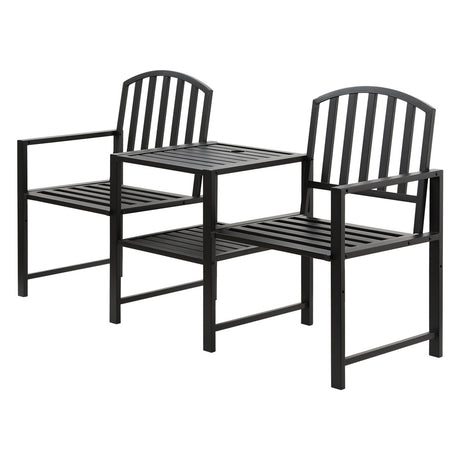Gardeon Outdoor Garden Bench Seat Loveseat Steel Foldable Table Patio Furniture Black