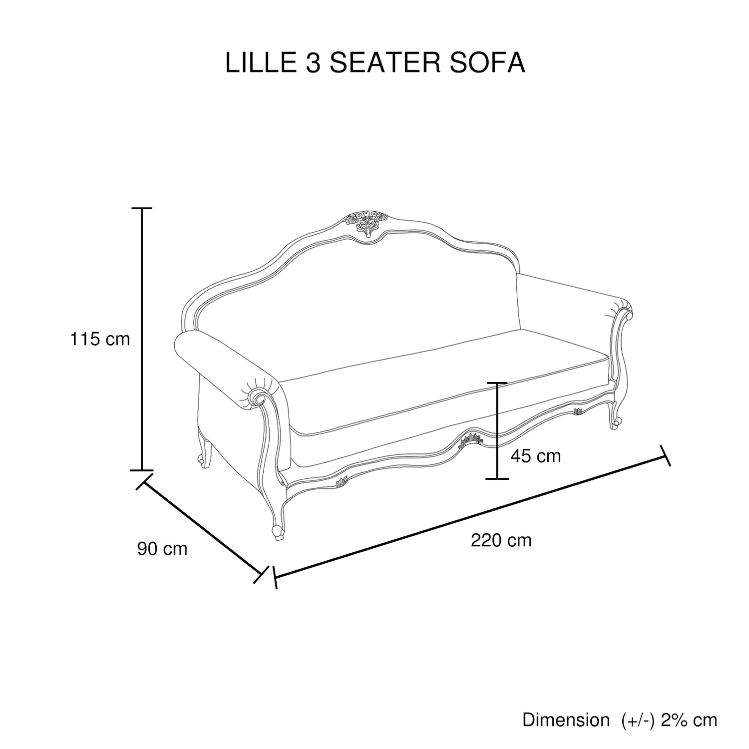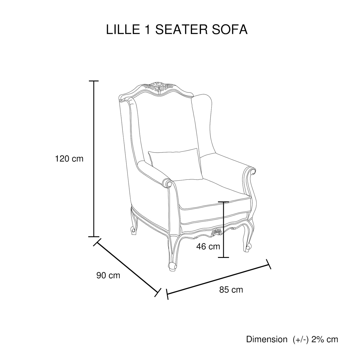 Our Lille sofa proudly boasts royal Chester Ford design and premium upholstered cover. Its medium high backrest has Oak wood frame and there is floral embellishment on top of the backrest. This Lille range has set of two and three seater sofas with one wing chair