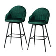 2x Bar Stools Velvet Swivel Metal Legs Green