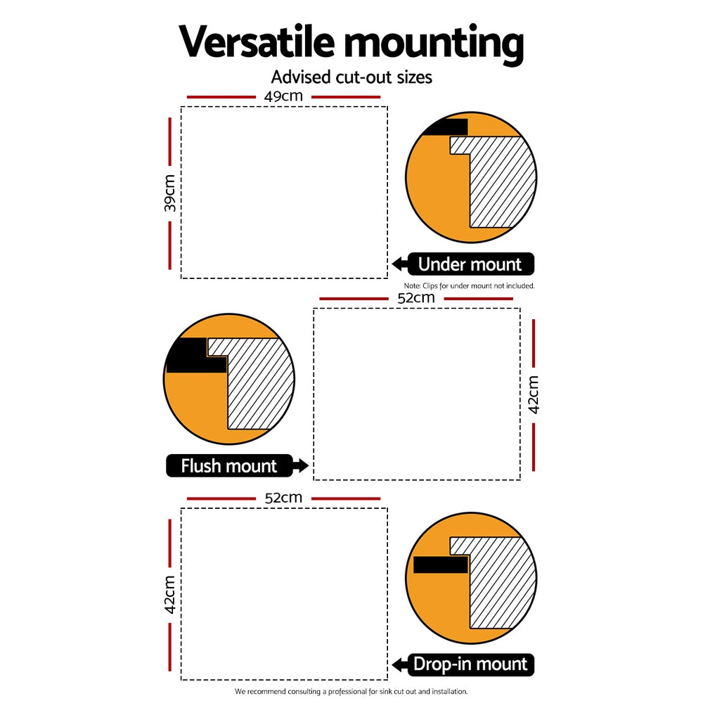 Cefito 54cm x 44cm Stainless Steel Kitchen Sink Under/Top/Flush Mount Black